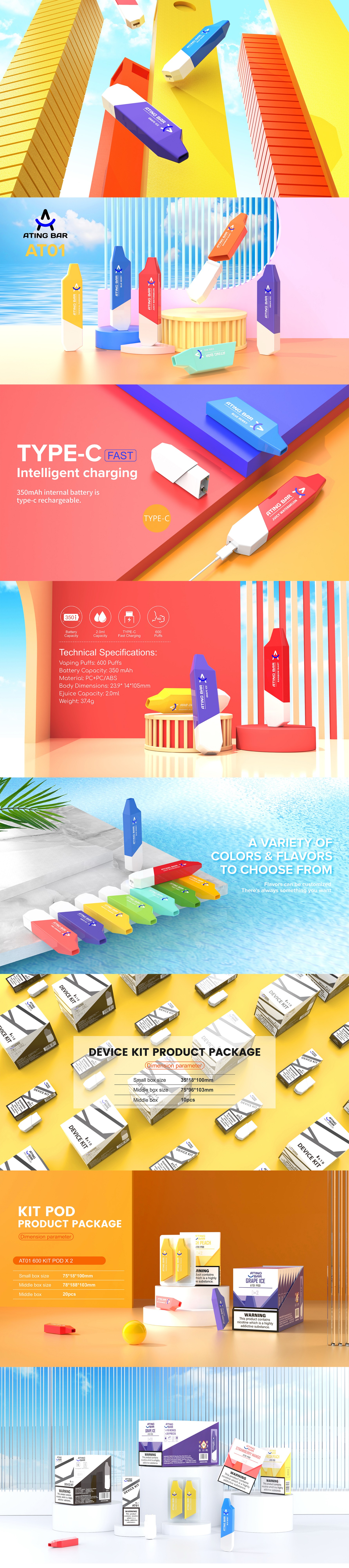 ATINGBAR AT01 Prefillable Pod  ist mit seinem einzigartigen Design, der einfachen Bedienung und dem hervorragenden Geschmackserlebnis ein unverzichtbares Trend-Accessoire für den Sommer. Egal, ob Sie ein modebewusster Individualist sind, der Wert auf ein auffälliges Äußeres legt, oder ein Pragmatiker, der Mobilität und Geschmack schätzt – das AT01 erfüllt Ihre Ansprüche perfekt. Wählen Sie AT01 und entfachen Sie Ihre Sommerleidenschaft!