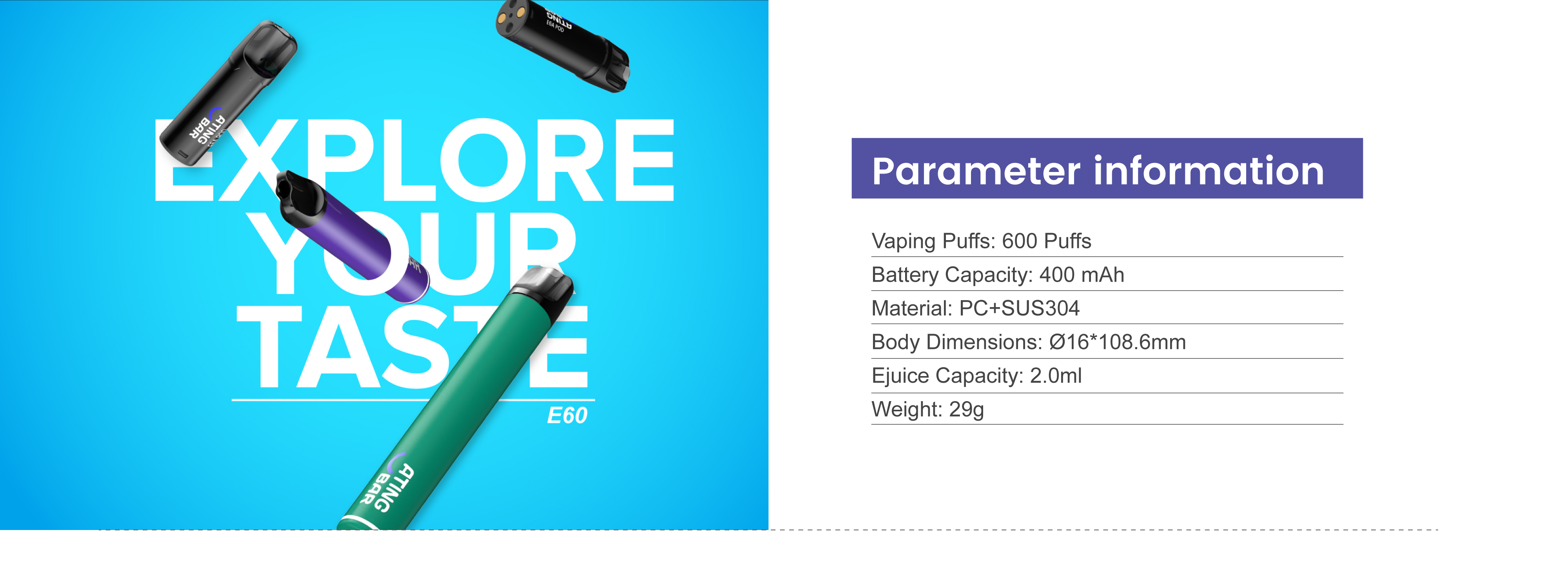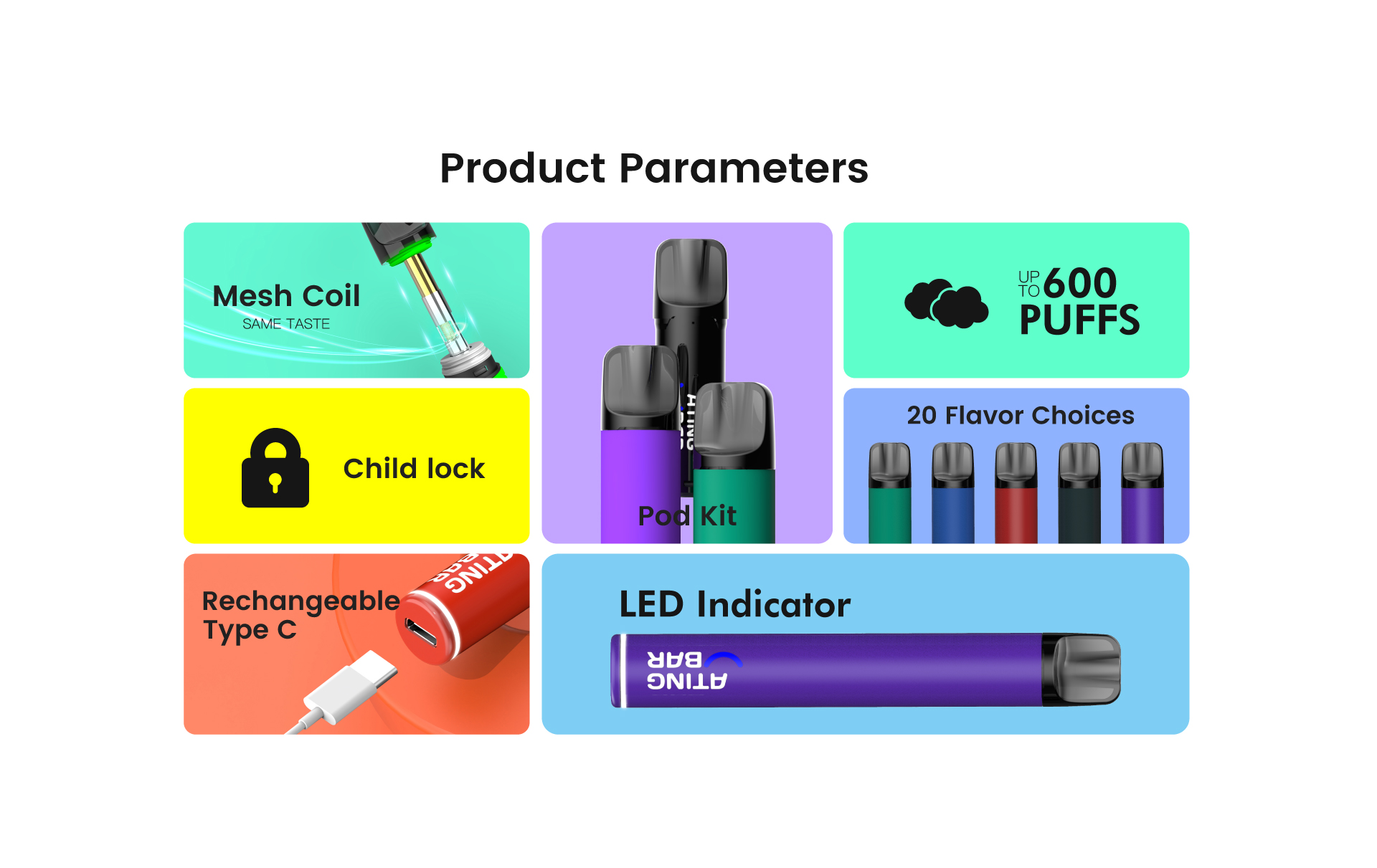 Parameter von ATINGBAR E61 Prefillable Pod System Basis Batterien