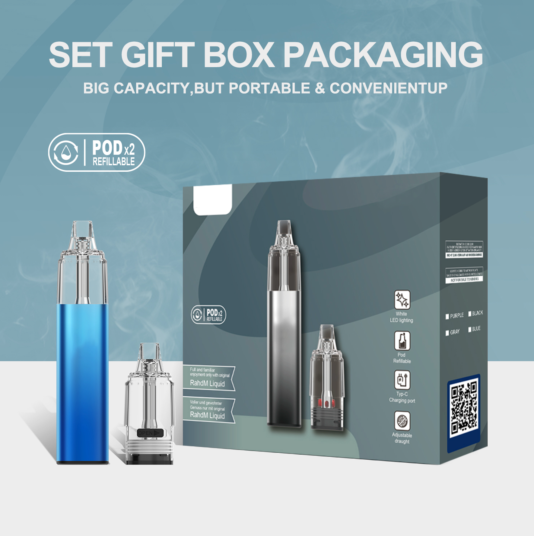 Konform große Kapazität: 2ml vorgefüllter Pod (TPD-zertifiziert) + 10ml transparenter Nachfüll-Tank, insgesamt 6000+ Züge, britischer MHRA-Sicherheitsstandard.