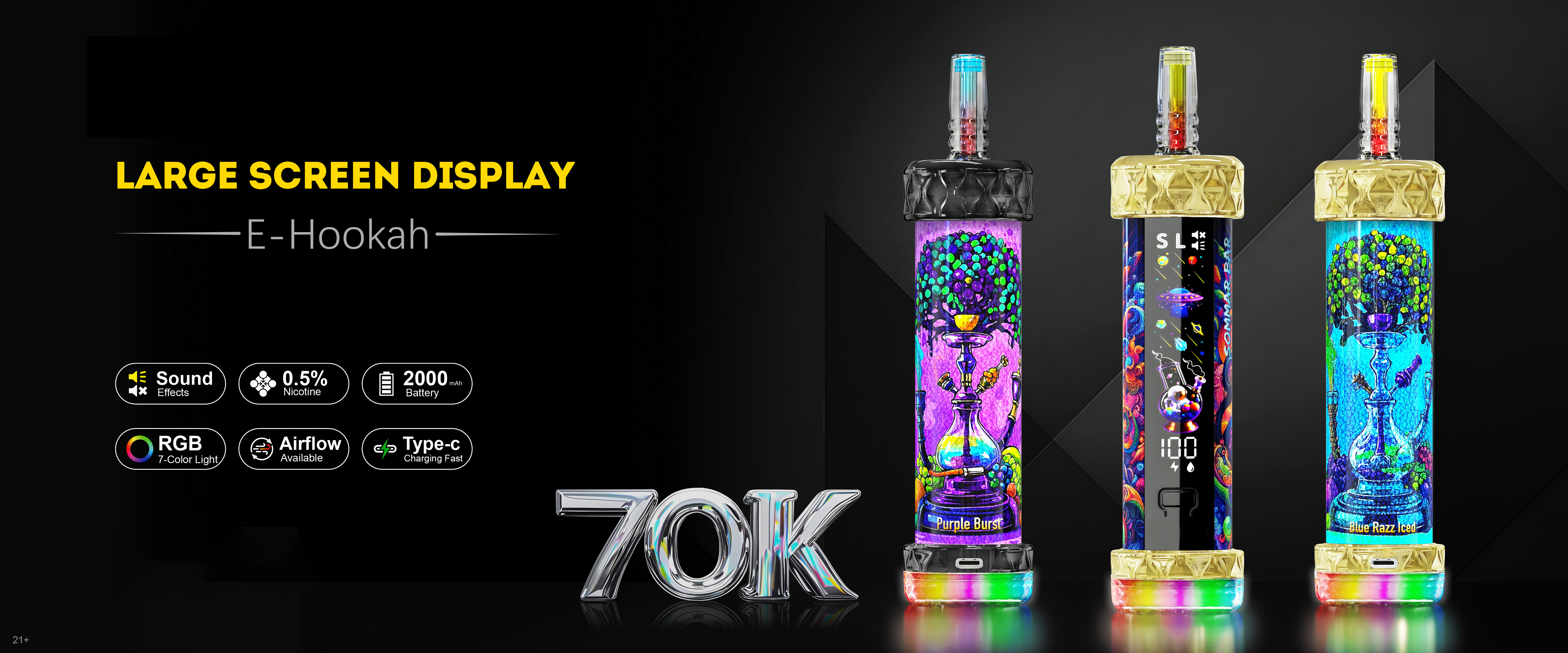 2025 neuesten DTL Full screen 70K E-Hookah mit Dampfgeräusch, Tracking, Batterien und E-Liquid Infos on time. Genießen Sie das Erlebnis einer E-Zigarette jederzeit und überall !
